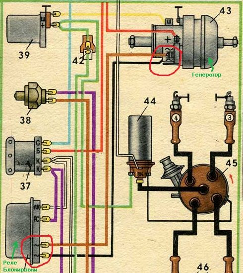 Еще вопрос по ЗАЗовскому генератору. С обмотки статора идет 3 клеммы. К одной из них вообще не был подключен провод, у другой он был обрезан и только у третьей был нормальный провод. Вот фото: А как эти 3 клеммы подключать? Судя по схеме проводки, там идет 2 провода на реле блокировки: А куда делся третьий? Куда его подключать? И еще, должен ли минусовый вывод генератора подключаться к массе? Salavat, Здорова! +6, настроение отличное! Сообщение отредактировал parfent - 2 марта 2014 15:25 -------------------- В любой непонятной ситуации - капиталь двигатель! © parfent |