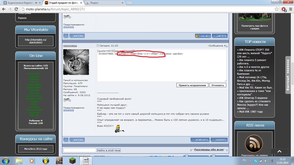 ![]() Мото знаток Репутация: 10 Группа: Посетители Регион: 68 Сообщений: 222 На сайте с: 2.10.2012 |