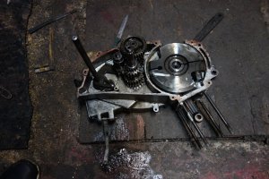 УРА! Мы располовинили двиг! Сначала поставили его на печку, погрели. Потом простучали болты и стали выкручивать. Смогли выкрутить лишь 1 болт, остальные срывались. Долго думали, потом я не выдержал и занялся своим мотоциклом. А друг тем временем взял растворитель и залил им 6 болтов. Через некоторое время он попытался и смог открутить еще 1 болт. Остальные не поддавались. Тогда было принято решение херачить по болтам от души. До этого мы лишь немного стучали по отвертке перед тем, как раскручивать. А сейчас херачили со всей дури. И о чудо! Оставшиеся 5 болтов очень легко открутились! Затем мы выбили втулку и обнаружили еще один болт, скрепляющий половинки. Постучали по нему как надо, и выкрутили. Затем ослабили маховик, поддели половинки, но почему-то не смогли разъединить их. Оказалось, что мы упустили еще один болт. Всего их оказалось целых 9! Вообщем выкрутили и начали оккуратно разъединять Потом начали вытаскивать коленвал и погнули съемник. FRAER, Nik-Sero, Красотаааа! Кстати, парни, а где же Динго? -------------------- В любой непонятной ситуации - капиталь двигатель! © parfent |
