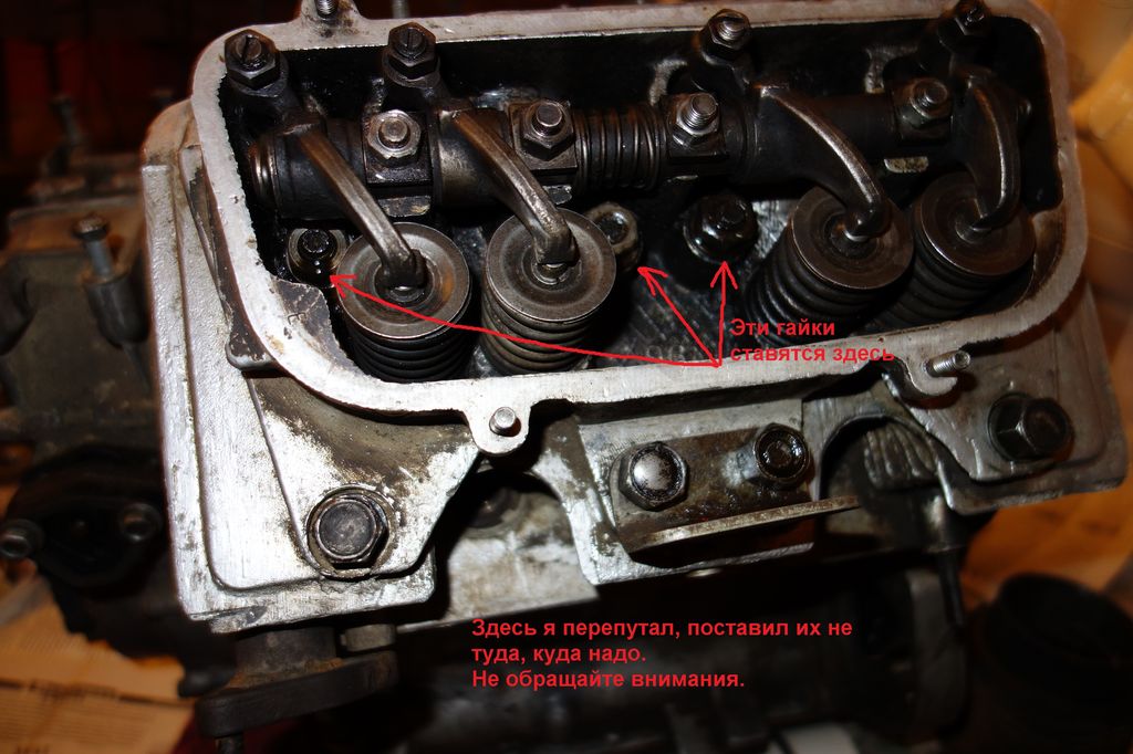 Здорова парни. У меня вопросы возникли насчет зазовского двигателя, может кто подскажет. Мне не хватает нескольких деталей, собственно, хотелось бы узнать, чем их можно заменить. Одну головку цилиндров я могу собрать, а для второй не хватает 4 гайки, 4 изощренной формы шайбы и одной пружинки. Где только не искал - у нас в городе не продают, а тот гараж с заброшенным запором заварили и поставили замок. 1) Вот такая гайка. Это обычная гайка, но только она глухая с одной стороны: Эти гайки ставятся там, где показано стрелками: Видимо они глухие для того, чтобы масло из полости не протекало через шпильки. Вопрос: чем их заменить? Можно ли использовать обычные гайки, промазав резьбу герметиком? 2) Далее, мне не хватает одной такой пружинки: Такие пружинки устанавливаются сюда, под кожуха штанг толкателей: Чем ее заменить? 3) И последнее. Не хватает 4 шайбы вот такой вот формы: Они устанавливаются под гайки, держащие валик коромысел: Можно ли вместо них поставить обычные плоские шайбы? В крайнем случае, эти шайбы можно выточить из куска железа, но мне как-то неохота возиться... Или можно поставить на каждую головку 2 таких шайбы и 2 обычных плоских? -------------------- В любой непонятной ситуации - капиталь двигатель! © parfent |