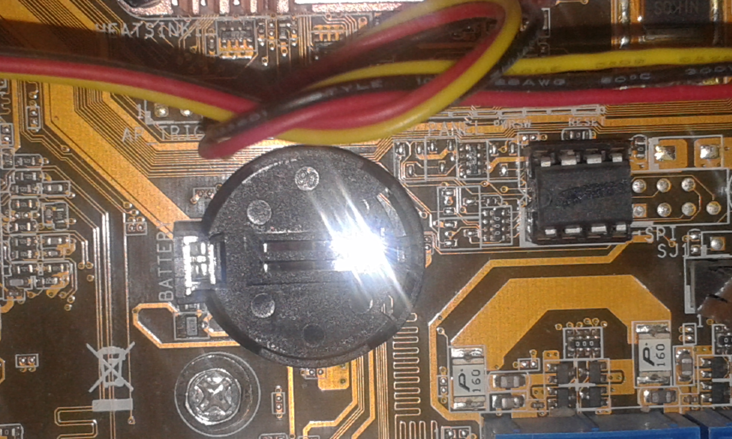 disc122333, Предварительно отсоеденив провод питания от розетки, замкни контакты батареи и нажми кнопку включения системника. |