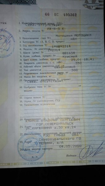 В общем хочу купить вот этого ижа с документами. Его купил чел и не оформлял его, но хозяин знаю где живёт. Люлька тоже имеется. Это был иж переходка 86г.в. он. Щяс он в 5 облицовке и движок стоит от планеты 3. В общем хочу перекинуть на этот иж всё с моего ижа который без доков. Доки все есть птс бумажка, пластиковая карточка, номер нового образца. Скока будет стоить переоформление? Там 2ой хозяин в птс. Кстати отдают за безценок 2т.р. всего. -------------------- Гараж - это лекарство от плохого настроения. |