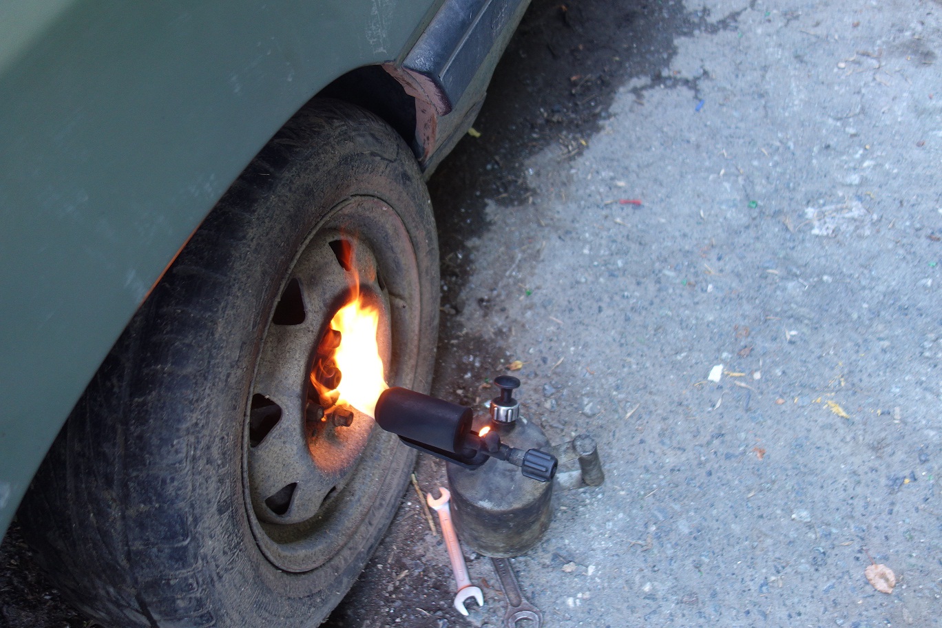 parfent, пояльной лампой там делать нечего! купи газовую горелку с маленьким соплом продается в любом строй магазине и грей именно гайку гайка нагреетсябыстрее чем вал из за разной массы и только потом крути но не до конца а лиш сорви ее с места затем остуди и крути до конца но прежде чем это делать осмотри гайку если она с контящей юбкой проверь хорошо ли ты ее разкернил? |