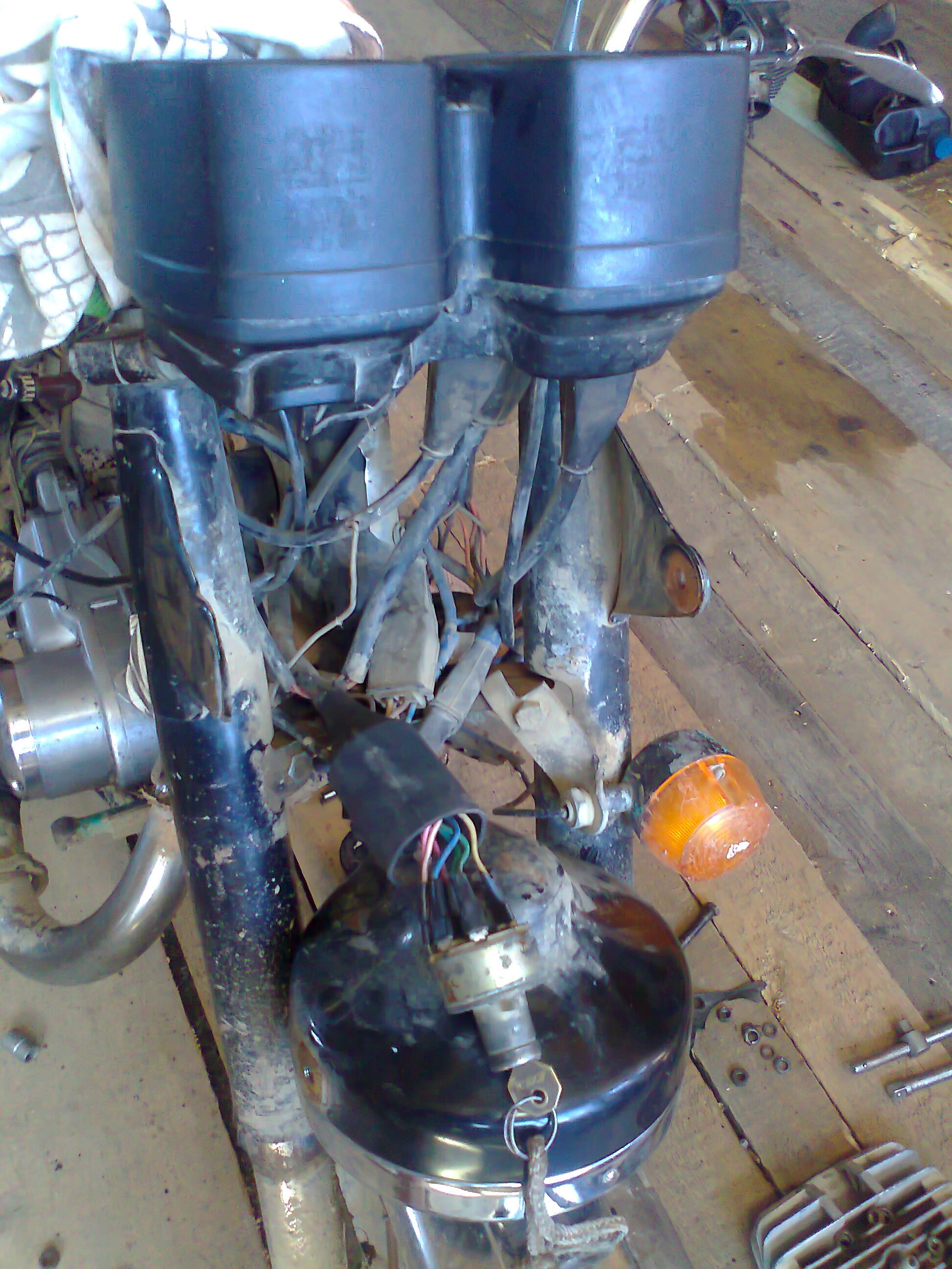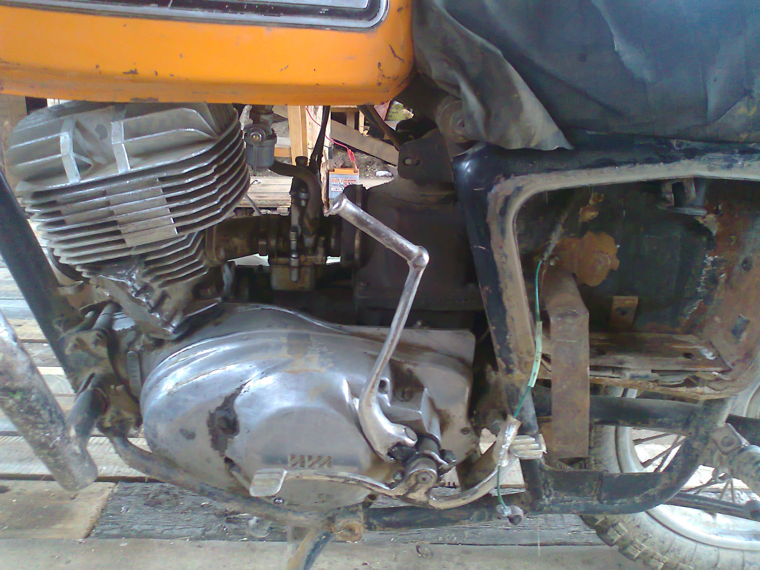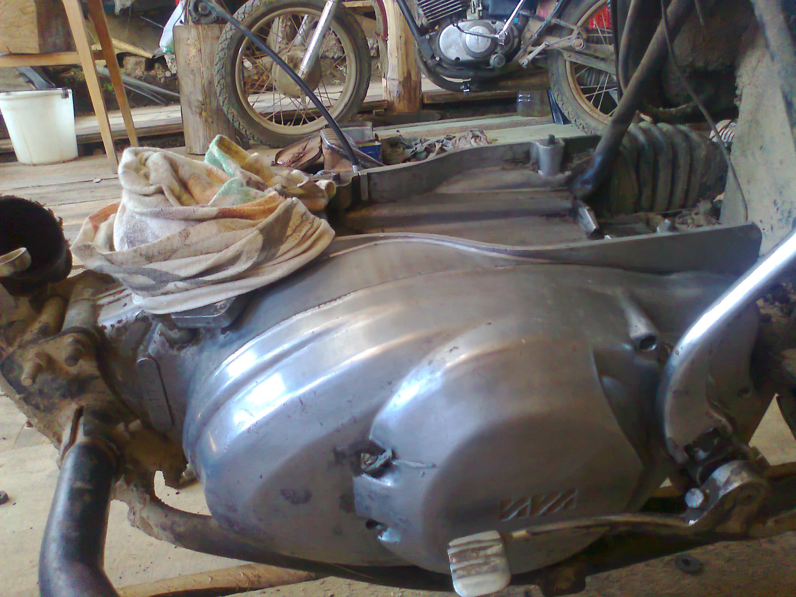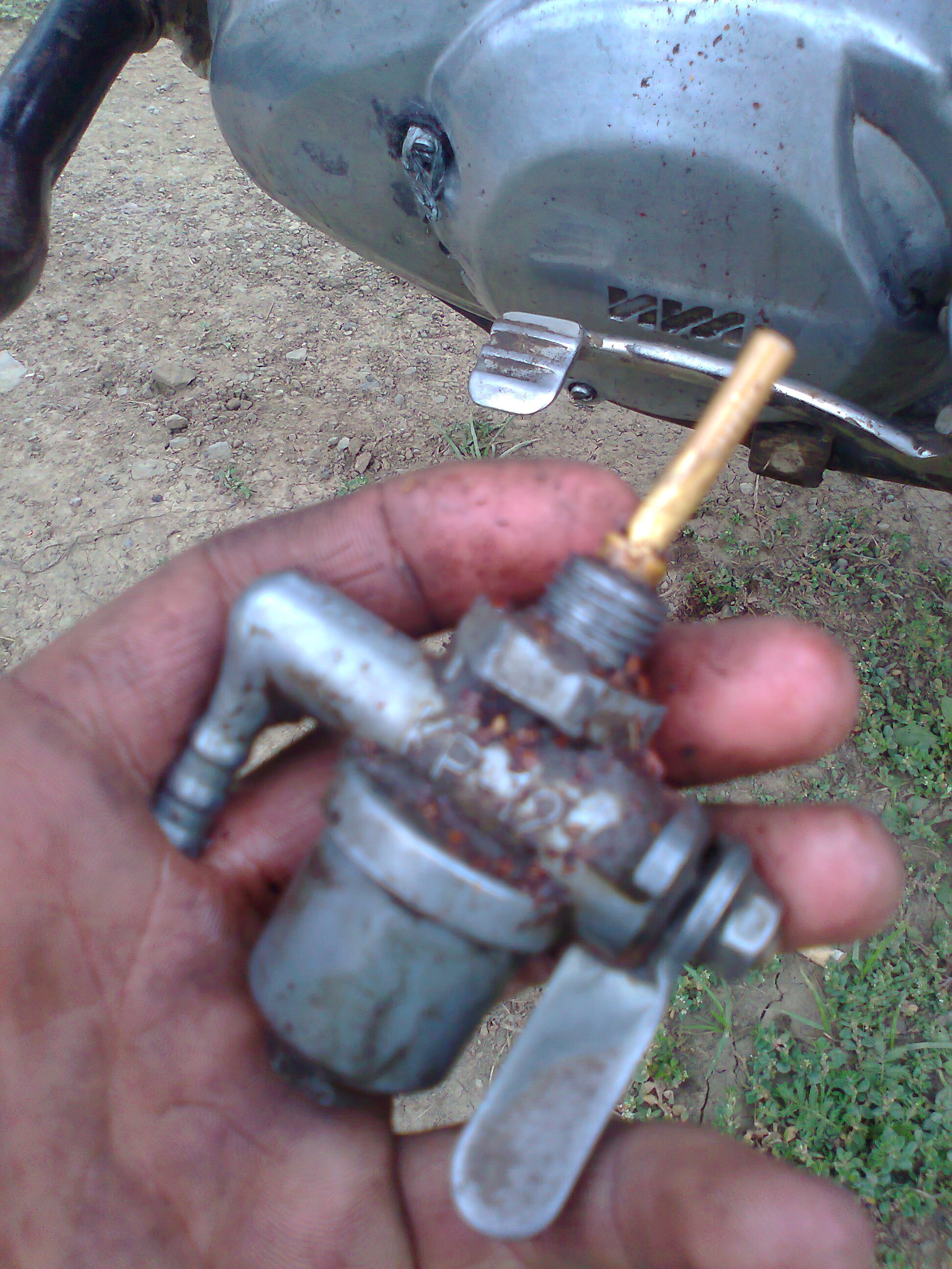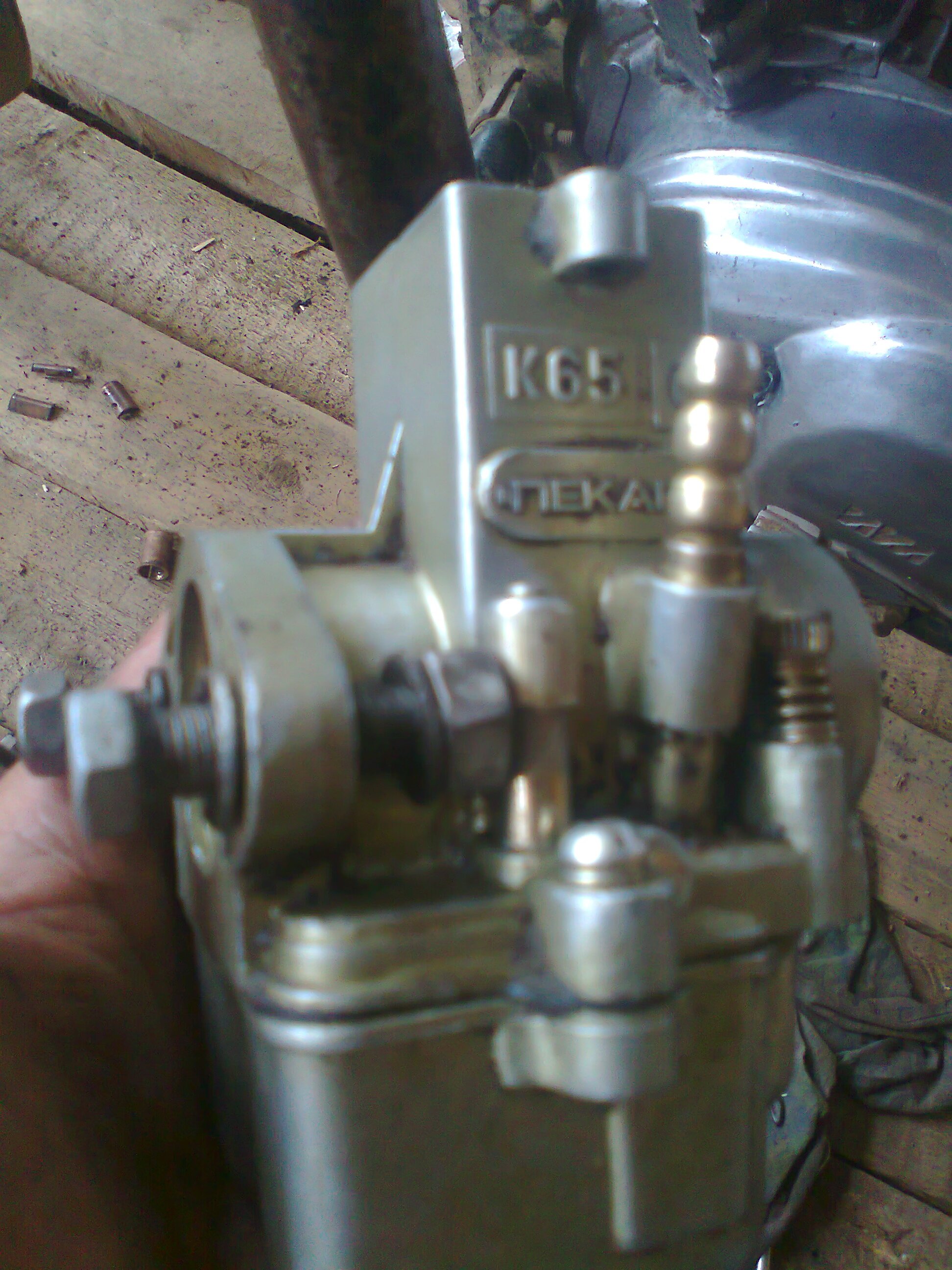 вот в таком состоянии я его купил работа двигателя ужастное стучал палец и я решил поменять его разобрал то бысстро а собрать пришлось ждать пока зпчастей привезут решил поставить карб с минска повара так называю я его и еще когда я выкрутил краник у видел такую вот пятрушку