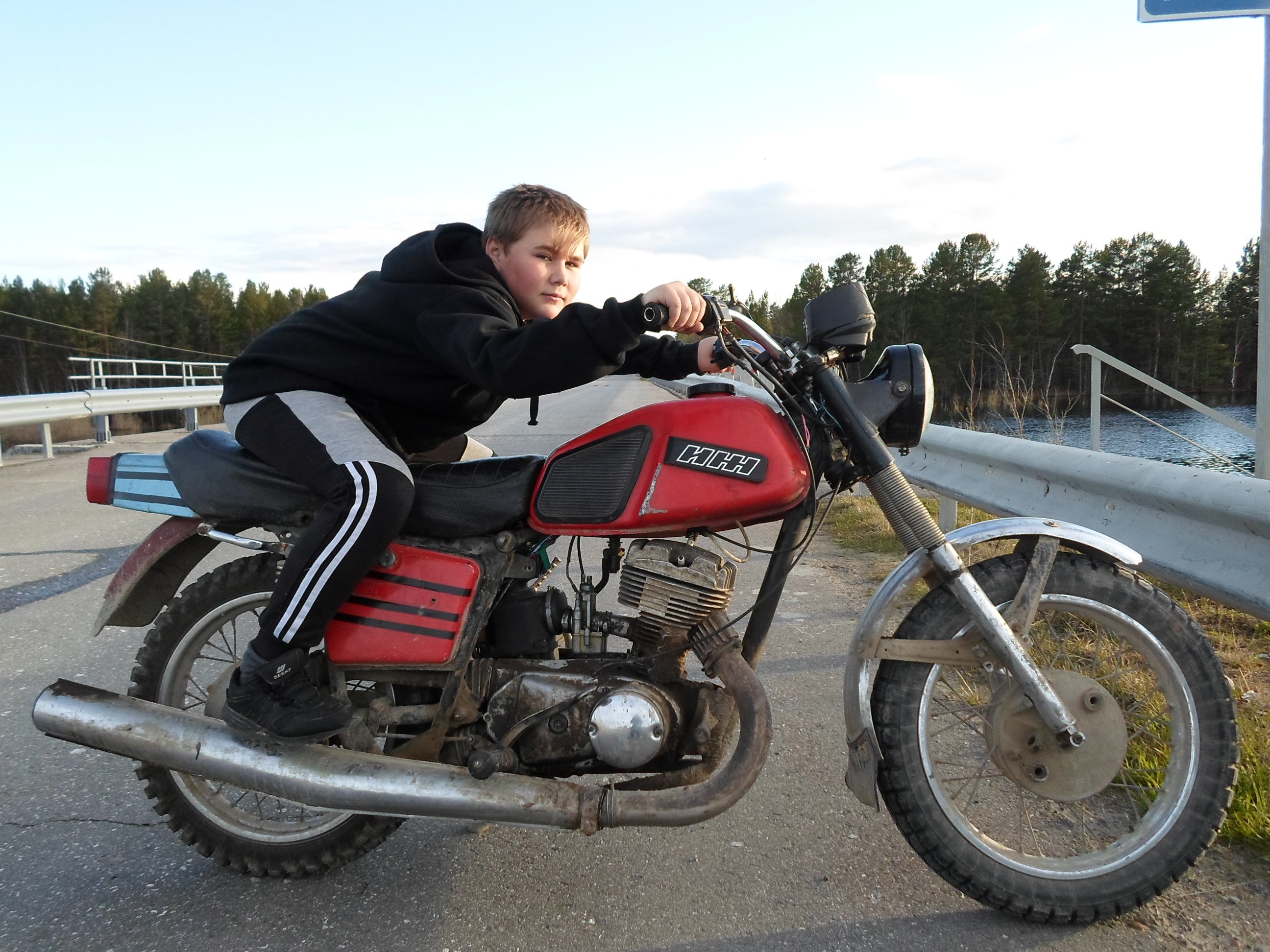 Отдал мне его отец, он у него стоял в сарае 5 лет и он был в ушатаном состоянии, но как ни странно он завелся с первого пинка и после этого отец прокатился на нем.