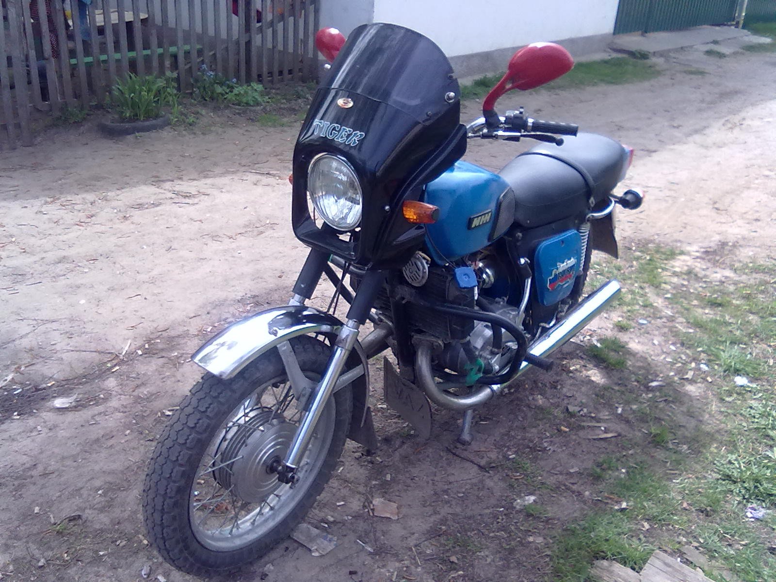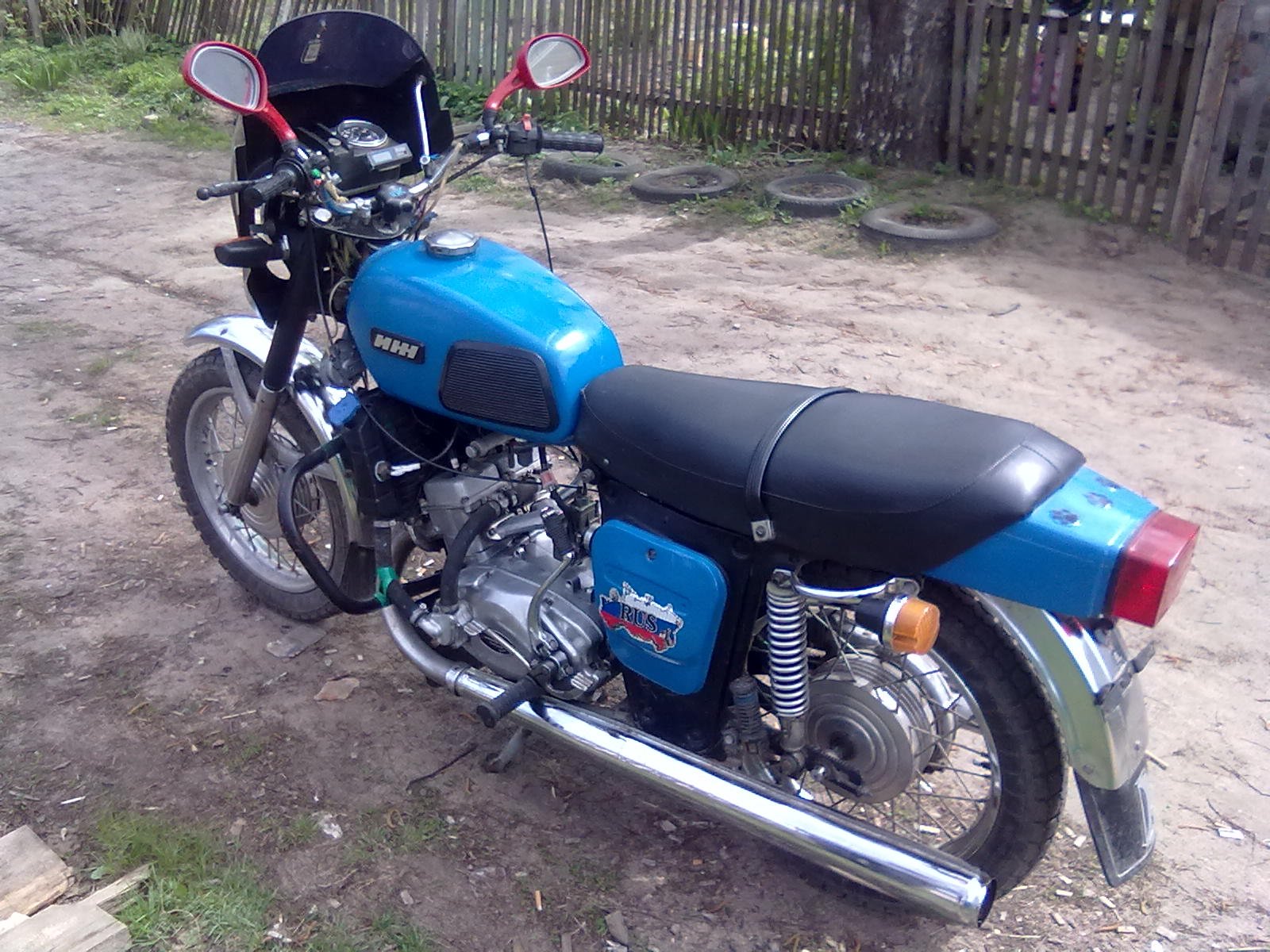 Сначала естественно разобрал до винтика, отчистил, перекрасил. Поставил минский щиток с самодельным креплением (всегда мечтал о щитке на колесе а не подвешенном сверху), кое-как перетянул сиденье (не окончательный вариант, просто на сезон пока), переделал повороты (задние тоже скоро будут), задний фонарь вместе с крылом делал сам с нуля. Задний щиток обрезал на 3 см и продвинул дальше под сиденье.