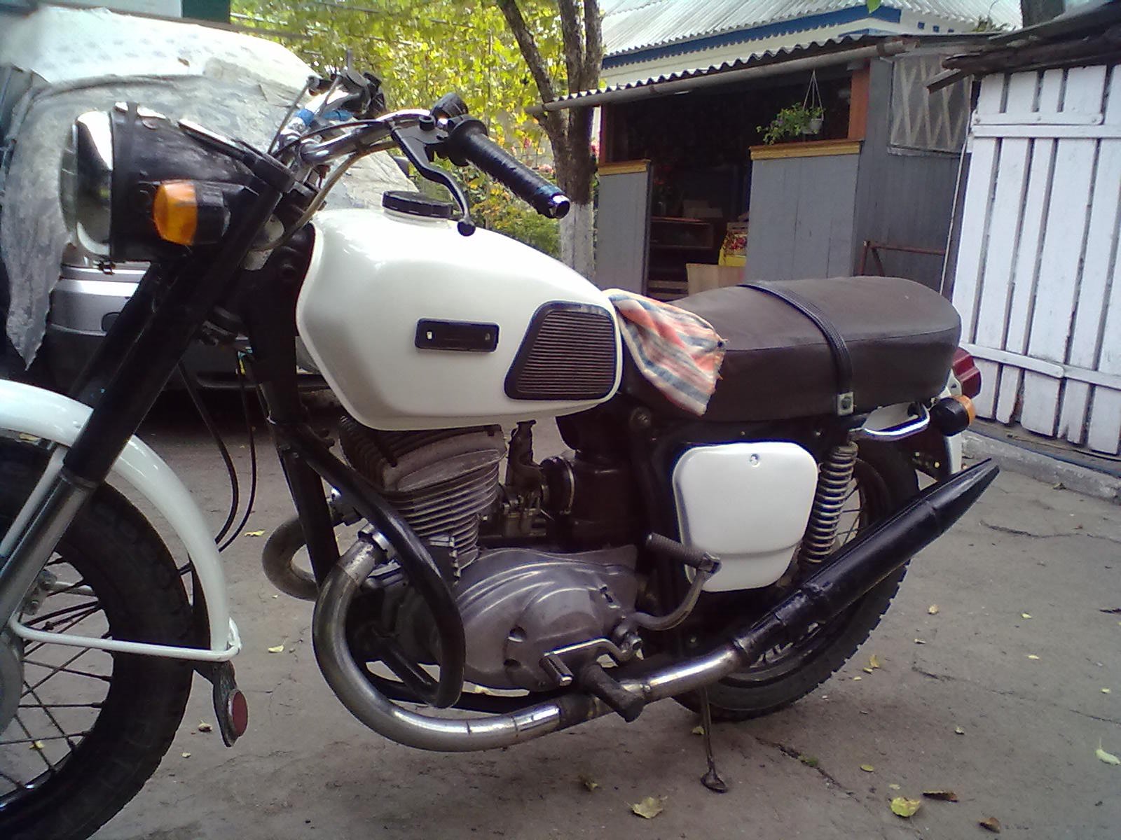 ИЖ Планета 3,бывший мотоцикл моего соседа.Купил он его за 1.5 тыс.руб.,он был в ужасном состоянии,но после долгих усилий он был востановлен и поставлен на колёса.Перекрашен,вилка от Явы,переварил раму,поменял глушаки (так как от тех остались только пустые трубы),в общем мотоцикл был просто супер,ямы почти не чувствовались,да и пёр он не дуром (звезда на 21) стояла.В общем проездил он так сезон,потом решил купить Урал и продал его за 6тыс руб.В этот же день у того парня,который его купил он сломался,так он на нём почти и не езидл,всегда был в ремонте.(виноват не мотоцикл,а сам покупатель),он его конкретно ушатал и продал,сейчас он уже хз где находится и ездиет ли вообще).